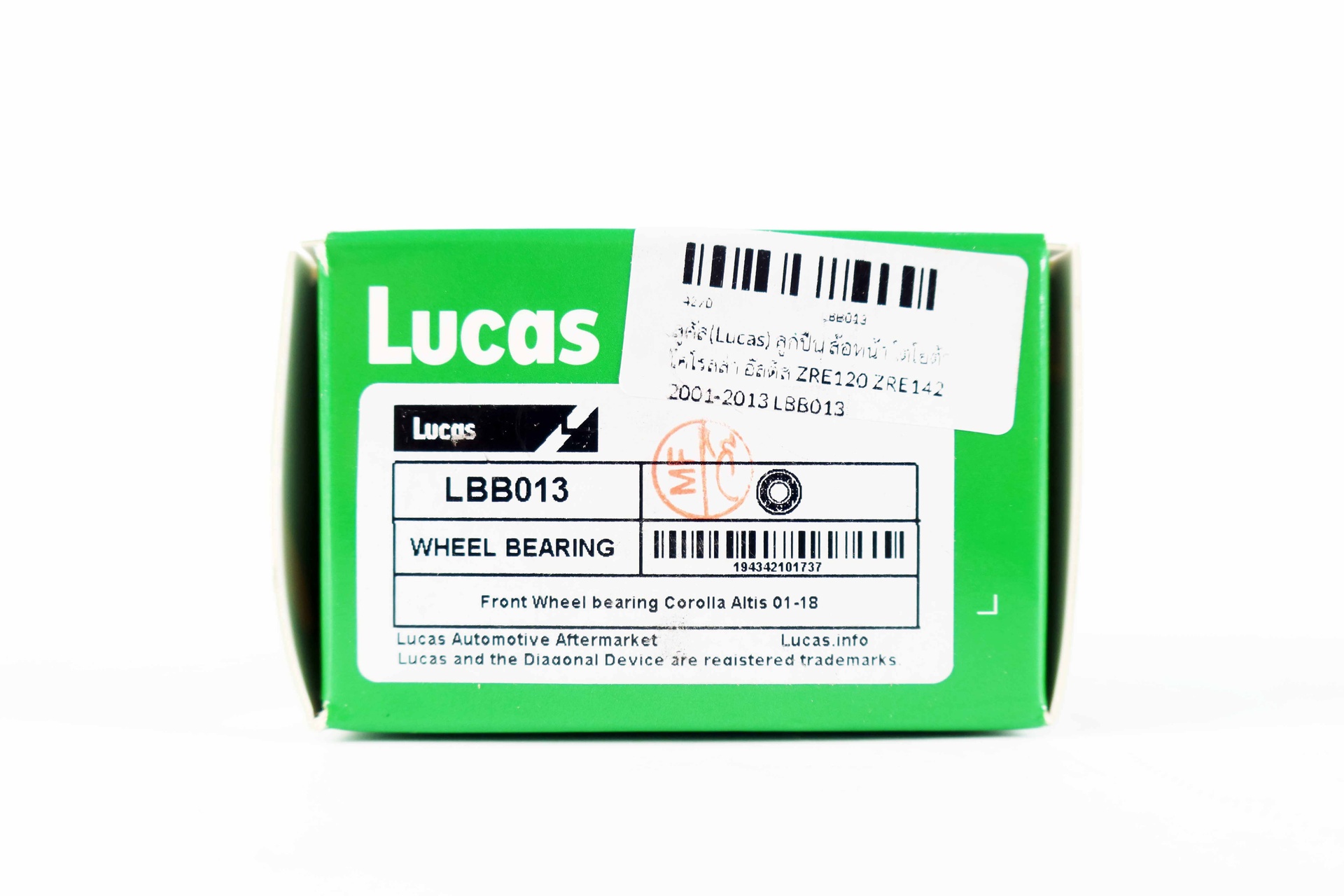 ลูคัส(Lucas) ลูกปืน ล้อหน้า โตโยต้า โคโรลล่า อัลติส ZRE120 ZRE142 2001-2013 LBB013