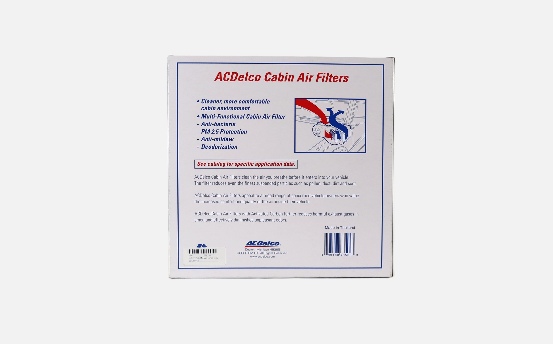 แบบชั้นกรองอากาศ 3 ชั้นกรอง ยกระดับการป้องกันเพิ่มเติมโดยใช้ชั้นคาร์บอนเพื่อป้องกันไวรัส, เชื้อโรค, สารก่อภูมิแพ้และแบคทีเรีย ไส้กรองห้องโดยสาร 3 ชั้นของเรามีคาร์บอนอยู่ระหว่างชั้นของไส้กรอง คาร์บอนมีรูพรุนเล็กๆ นับล้านซึ่งดูดและจับกลิ่นที่ก่อให้เกิดสารโมเลกุลต่างๆเช่นที่พบในไอเสียรถ คาร์บอนพร้อมกับวัสดุกรองระดับพรีเมี่ยมที่ช่วยกำจัดสารก่อภูมิแพ้และสารระคายเคืองทั้งหมดจากอากาศที่เข้ามาในห้องโดยสาร แผ่นกรองอากาศในห้องโดยสารของ ACDelco สามารถกักและกรองฝุ่นละอองขนาด 2.5 ไมครอนได้อีกด้วย